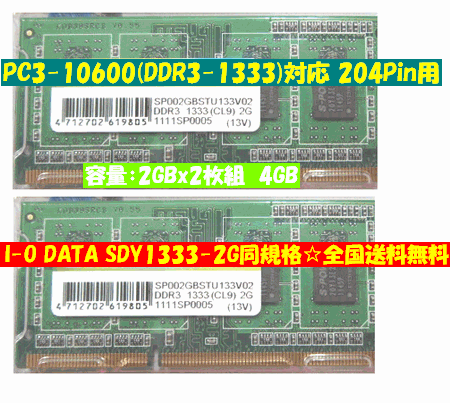 > 新品/送無/2Gx2=4GB/ I-O DATA SDY1333-2G同規格メモリ/厳選