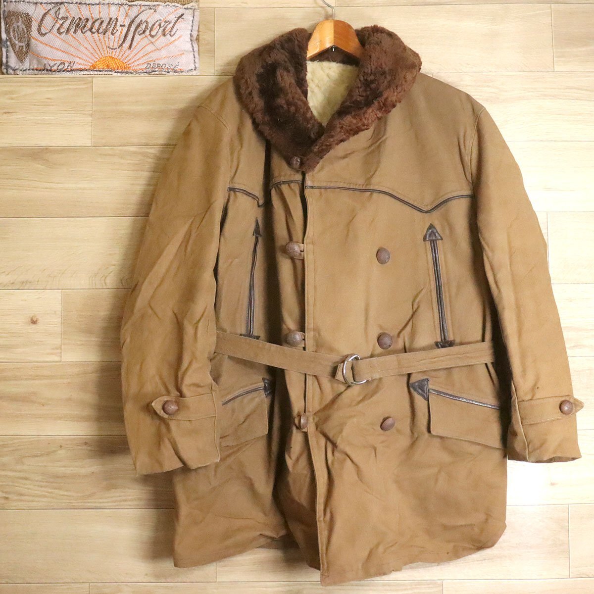 > K5O/R4.10-1 ユーロヴィンテージ カナディアンコート ボアジャケット マッキーノコート 襟ボア ダブルブレスト メンズ キャメル系