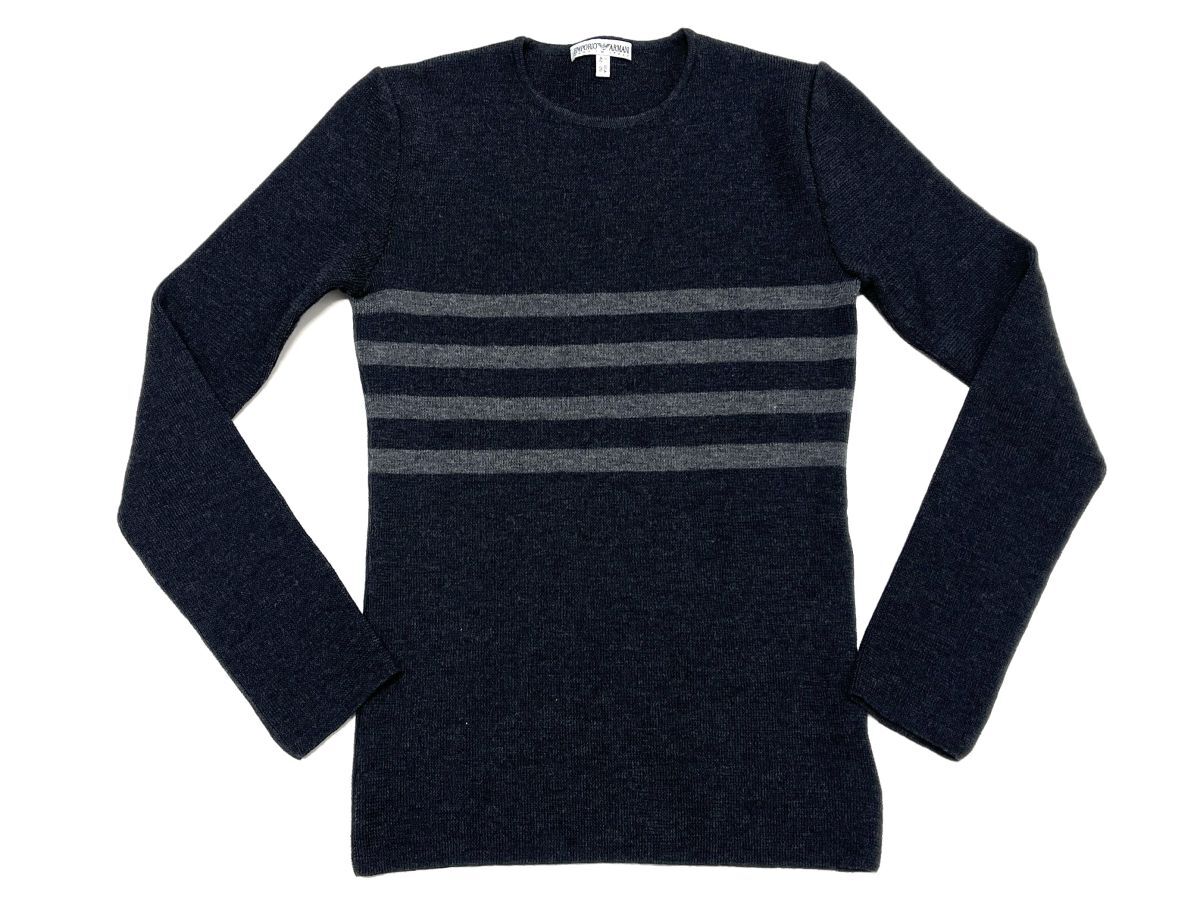 - 【R924】良品 EMPORIO ARMANI エンポリオアルマーニ 長袖 セーター レディース サイズ42 ボーダー ブランド ブラック系
