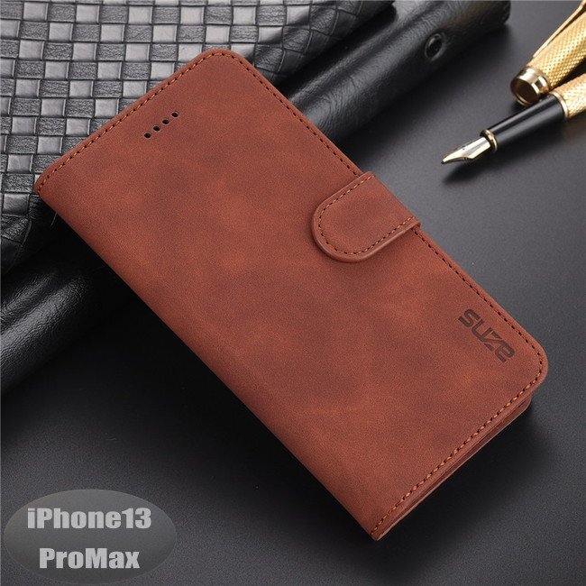 > iPhone13PROMax ケース PUレザー おしゃれ スマホケース スマホカバー ブラウン 耐衝撃 衝撃吸収【n276】