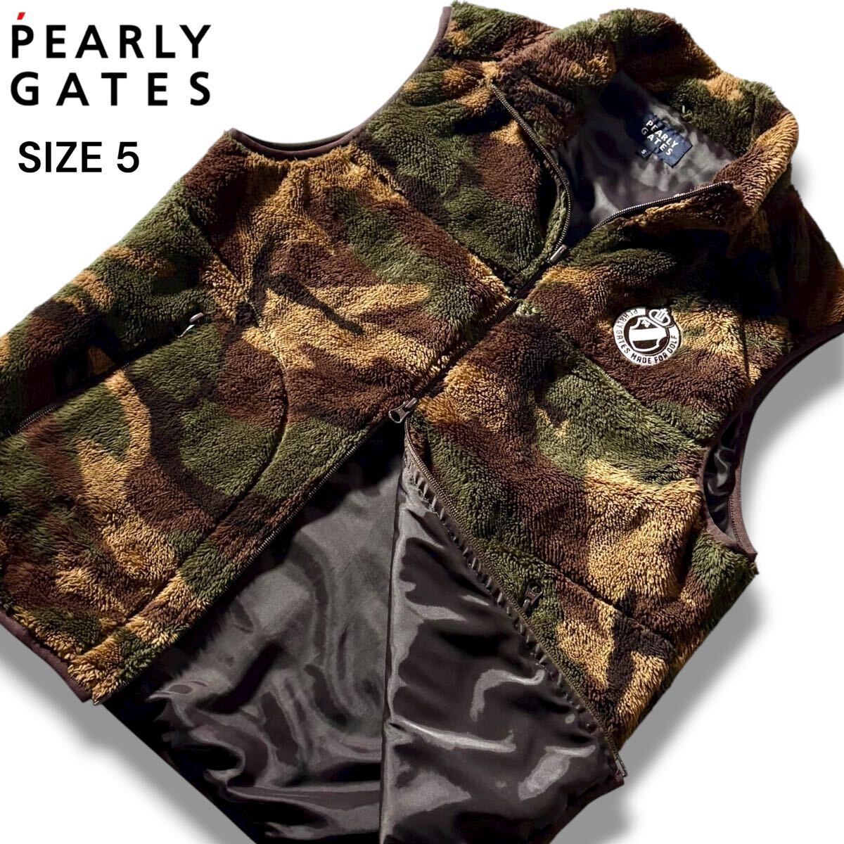> 極美品/Lサイズ●パーリーゲイツ PEARLY GATES ゴルフウェア ベストジャケット ボア 起毛 フリース ダブルジップ カモフラ 迷彩 PGワッペン