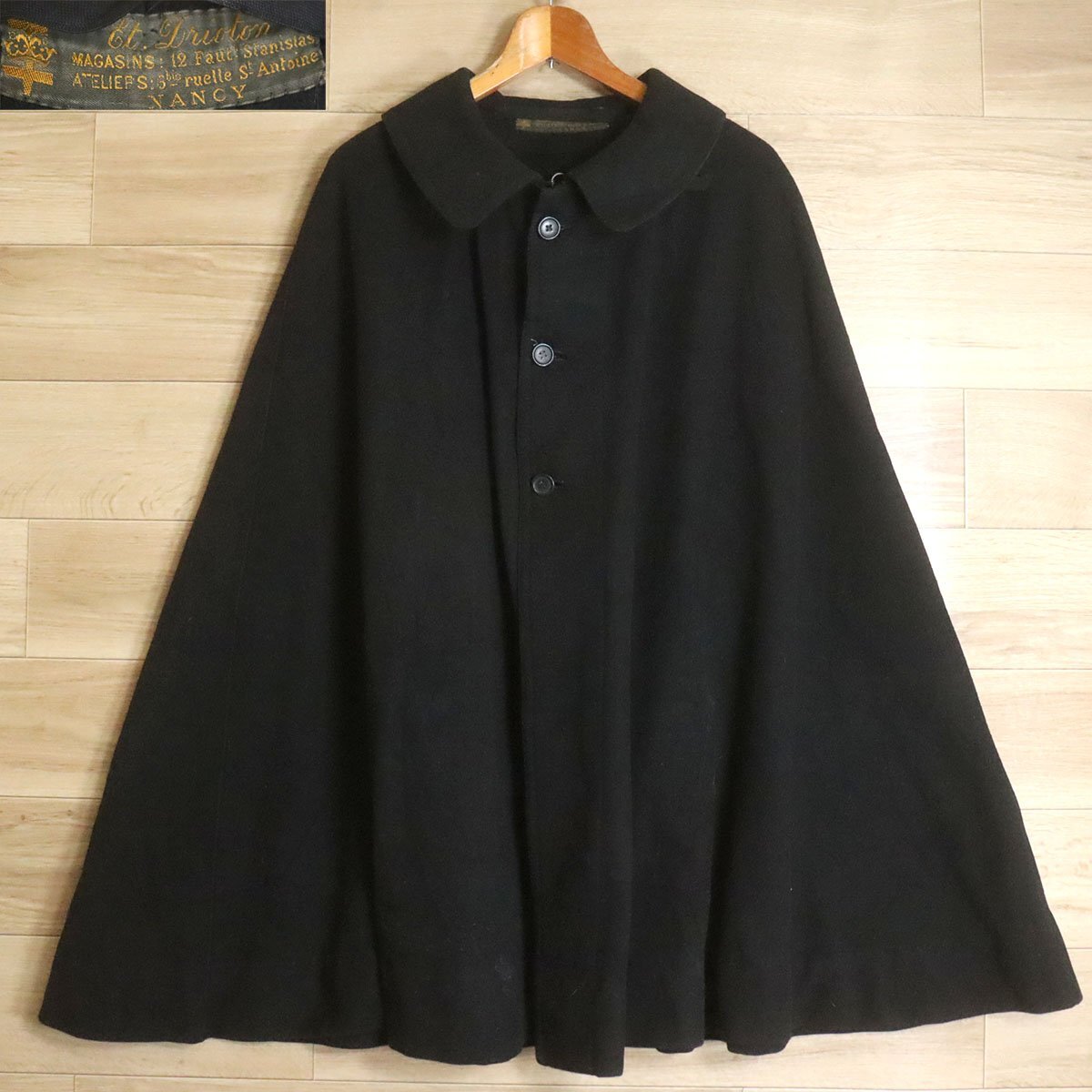 > K5O/R4.10-1 30s~ ユーロヴィンテージ Et. Drioton ポンチョ コート マント レインケープ メンズ ユーロ古着 ブラック系