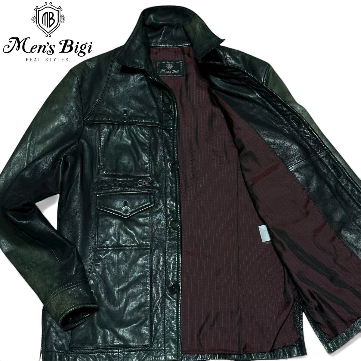 - 【極上のラムレザー】メンズビギ ラムレザー ジャケット シングルライダース 羊革 本革 シープスキン アウター ブルゾン 02 黒 MEN'S BIGI