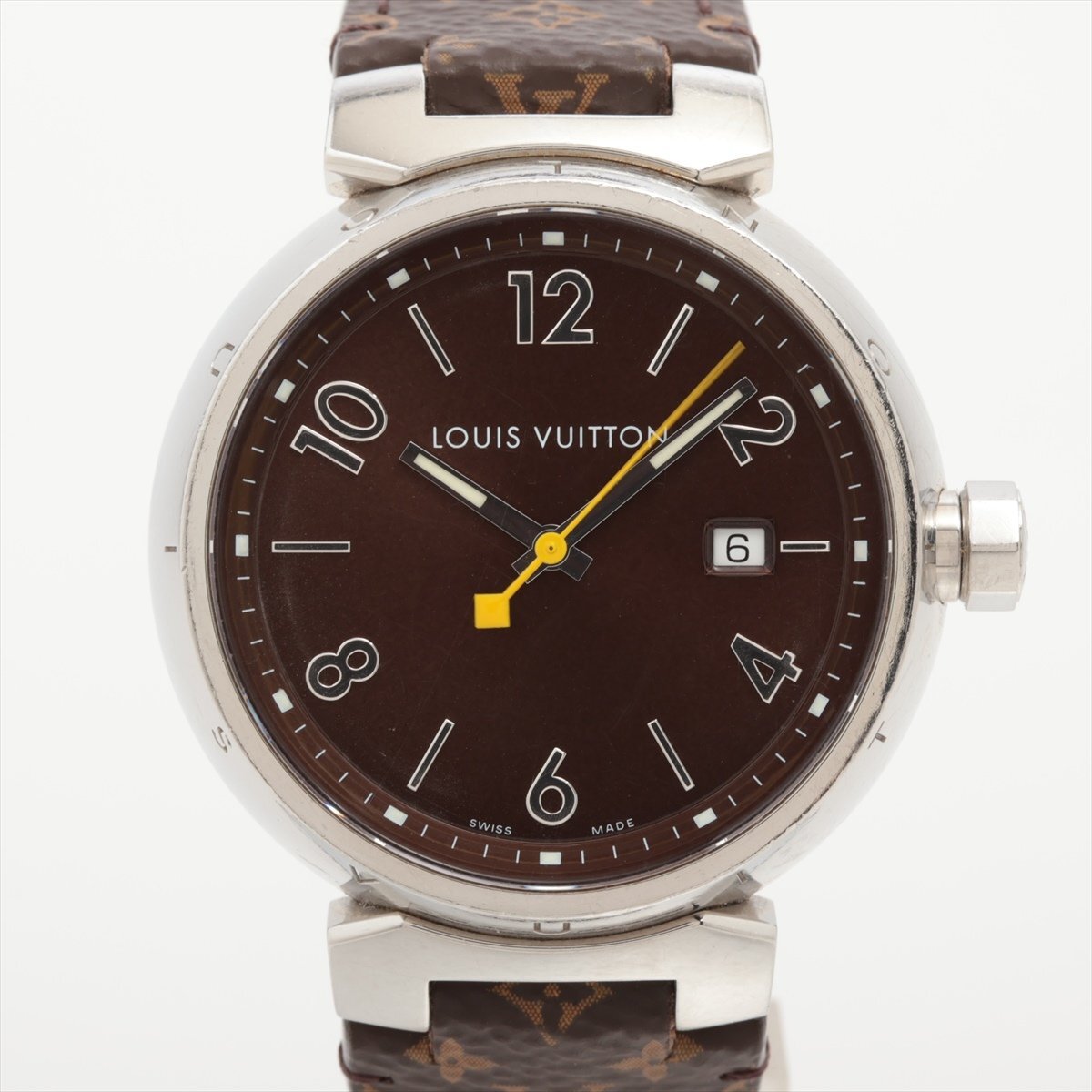 > ■ 1円 ~ 中古品 参定32.0万■ LOUIS VUITTON ルイ ヴィトン ■ タンブール MM Q1311 ■ ブラウン クォーツ メンズ 腕時計 モノグラム