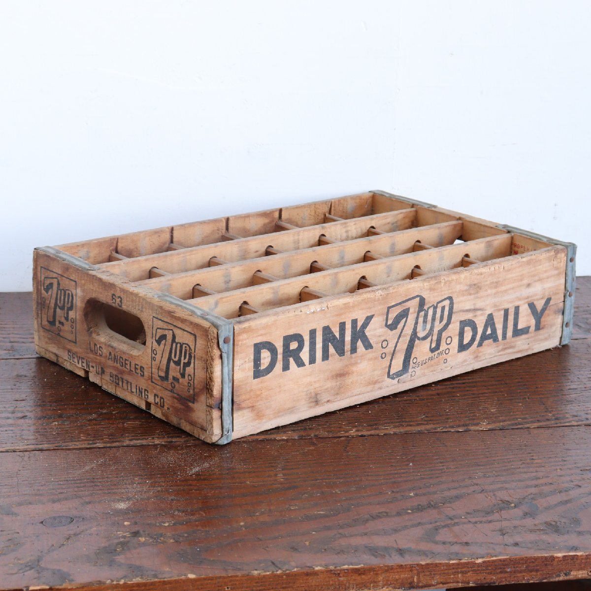 > 60s ヴィンテージ 7up 木箱 /アメリカ SEVEN-UP セブンアップ ウッドボックス WOOD BOX 収納 ジャンク品#702-25-038-453