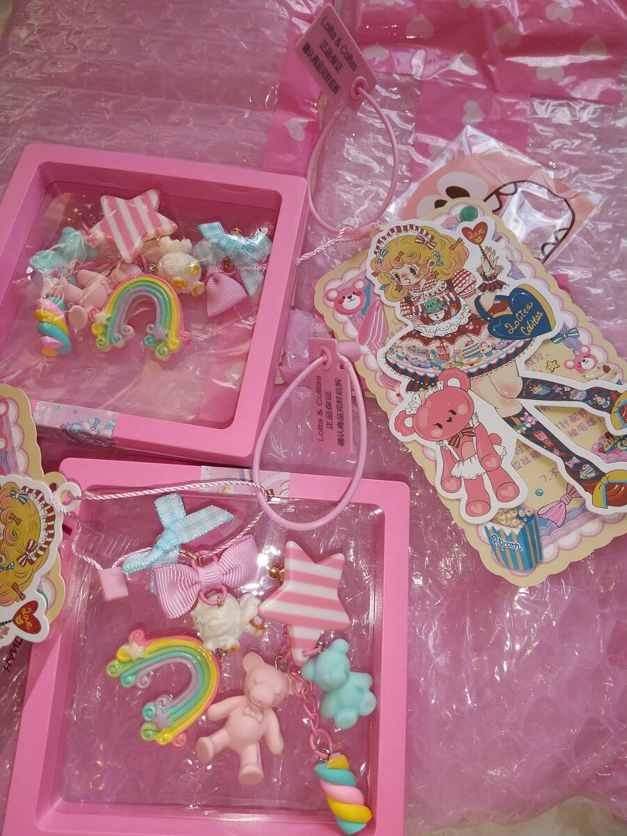 > ■Lolita&Colitas■Popcorn Clubシリーズイヤリング2個1組■カラフルリボンポップコーン虹星くまマシュマロロリータロリィタ激レア完売品