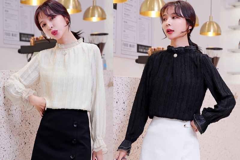 - 全2色 裏起毛トップス フリル 切り替え 体型カバー 着痩せ レース 【大きいサイズあり】 sweet系 M ブラック