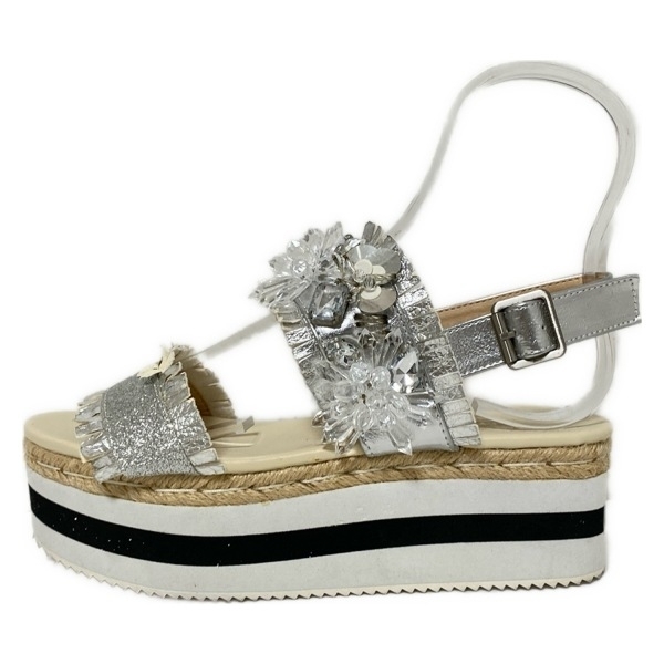 > チェスティ Chesty サンダル L - シルバー×ベージュ レディース フラワー(花)/スパンコール/ビジュー/グリッター/プラットフォーム 靴