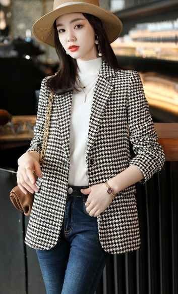 - ピーコート 長袖 切り替え バイカラー スリム 着痩せ 千鳥柄 【大きいサイズあり】 XL ブラック