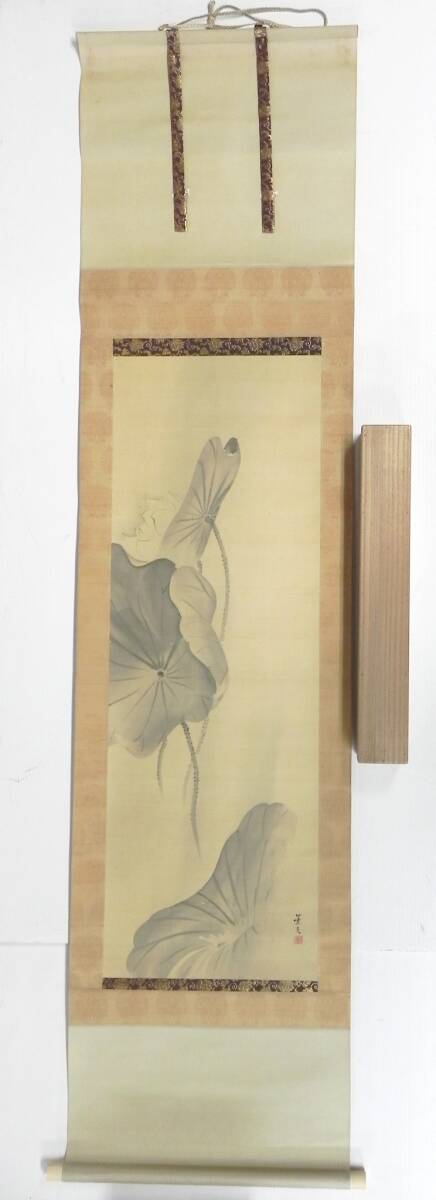 - [R5172]模写 松村景文 「蓮之花」 絹本 植物 四条派