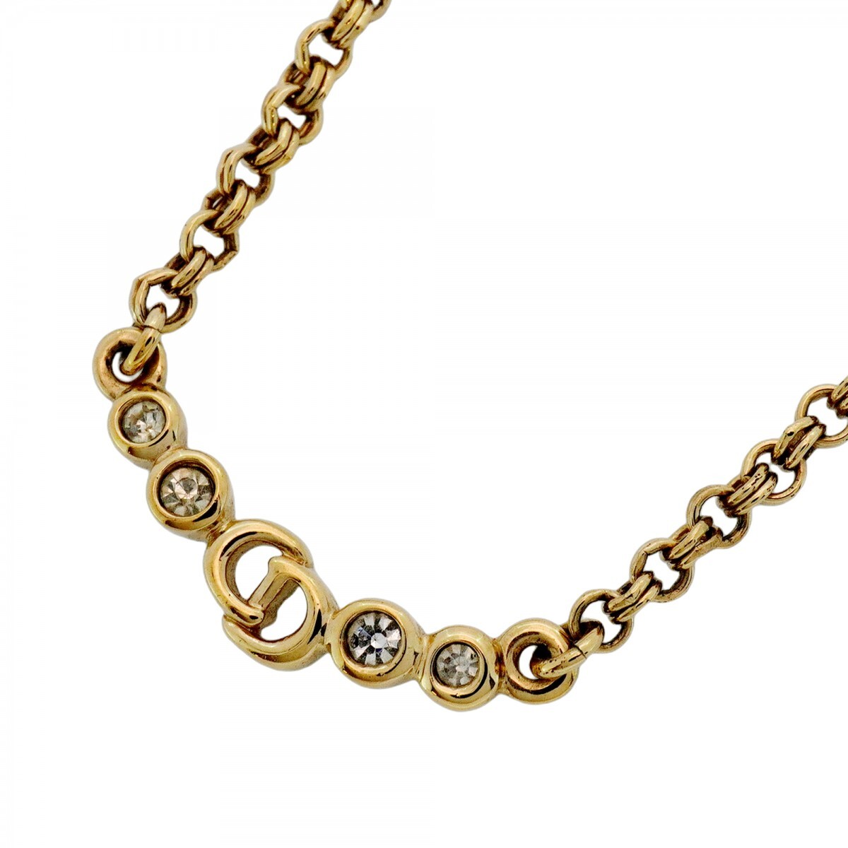 - ★SALE【5jmb0448】クリスチャンディオール ネックレス CDロゴ GPメッキ ラインストーン ゴールド【中古】レディース