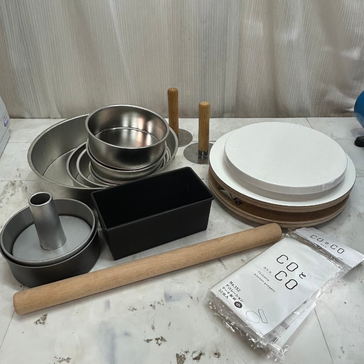 - ♪OG♪ 丸デコレーション型 シフォンケーキ型 パウンドケーキ型 回転台 小物 ステンレス アルミ 製菓道具 まとめ売り 中古品 ♪A-251108
