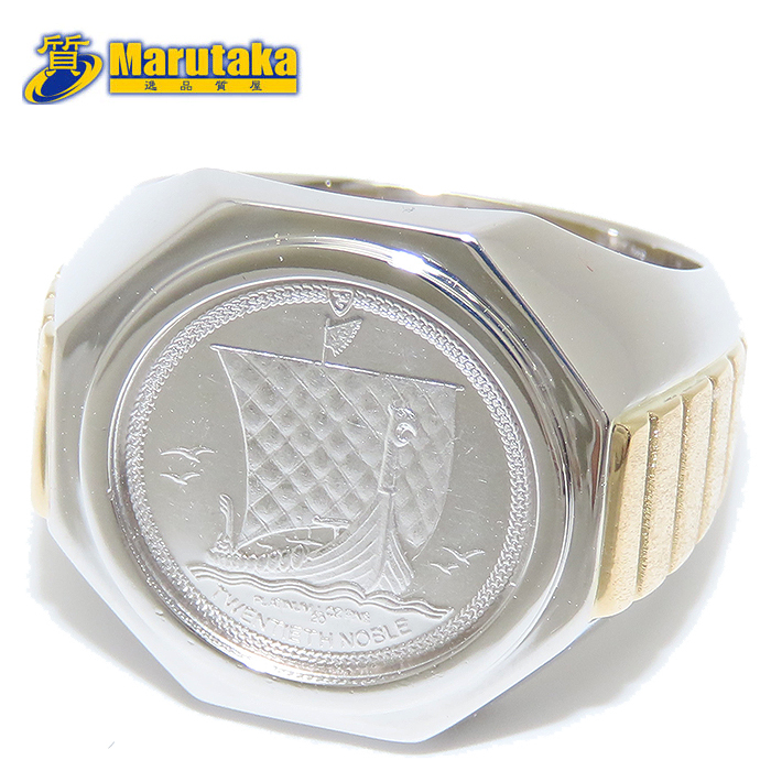 > マン島 ノーブル コイン リング プラチナ イエローゴールド 19.5号 エリザベス Pt1000 K18 Pt900 1/20oz コンビ メンズ 希少 レア