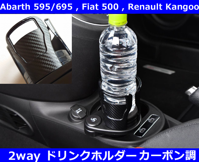 > アバルト595/695,フィアット500,ルノー カングー 2way カーボン調 ドリンクホルダー Abarth Fiat Renault Kangoo