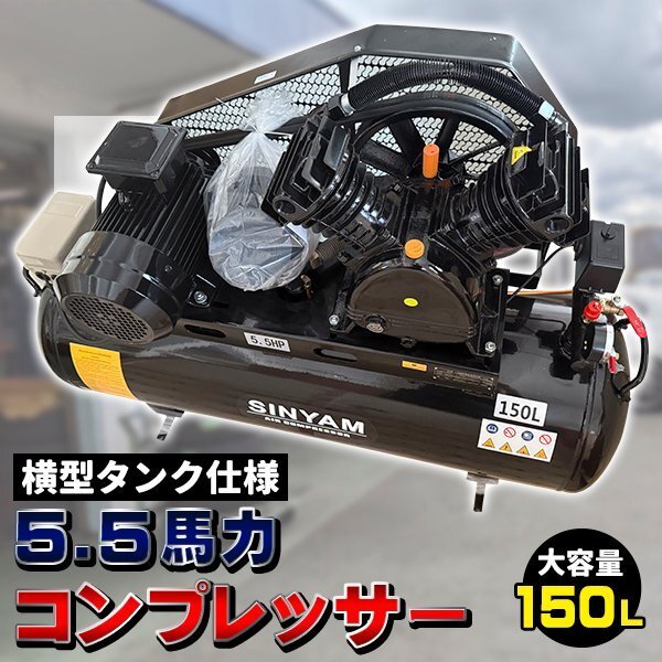 - 三相 200V 5馬力 150L 横型タンク ベルト式 コンプレッサー 圧力制御方式