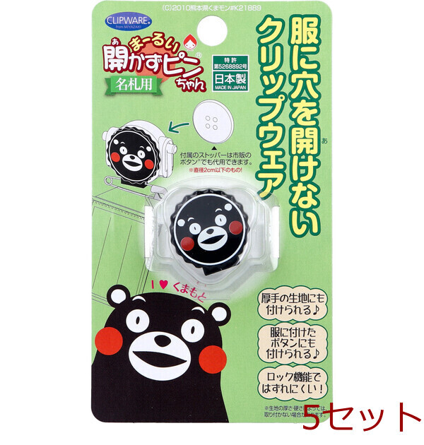 - まーるい開かずピンちゃん くまモン 黒 名札用 CA 010KB 5セット