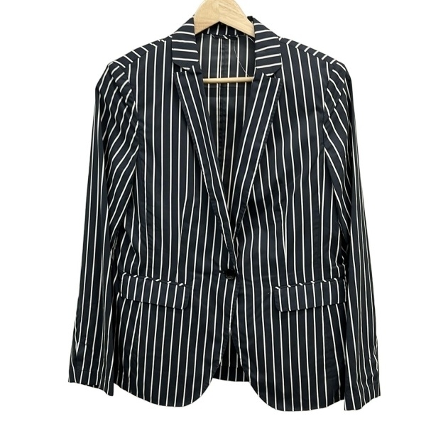 > トゥモローランド TOMORROWLAND サイズ40 M ダークネイビー×白 レディース ストライプ/肩パッド/春・秋物 美品 ジャケット