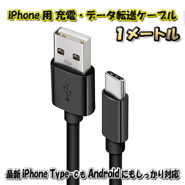 - 最新 iPhone Type-C 対応 Android 充電 データ転送 ケーブル 1m x1本 【カラー:ブラック】全国送料無料