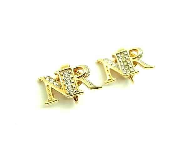 > ■美品■ NINA RICCI ニナリッチ ラインストーン クリップ式 イヤリング アクセサリー レディース ゴールド系 DJ3282