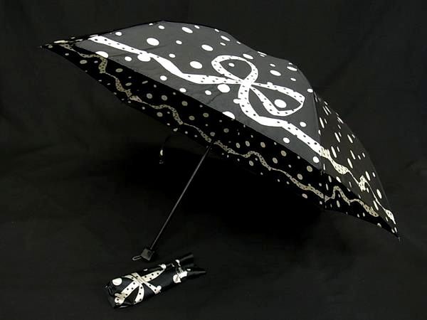 - LANVIN COLLECTION ランバンコレクション ドット柄 リボン 3段折り 折りたたみ傘 折り畳み傘 高級傘 アンブレラ ブラック系 DH6215