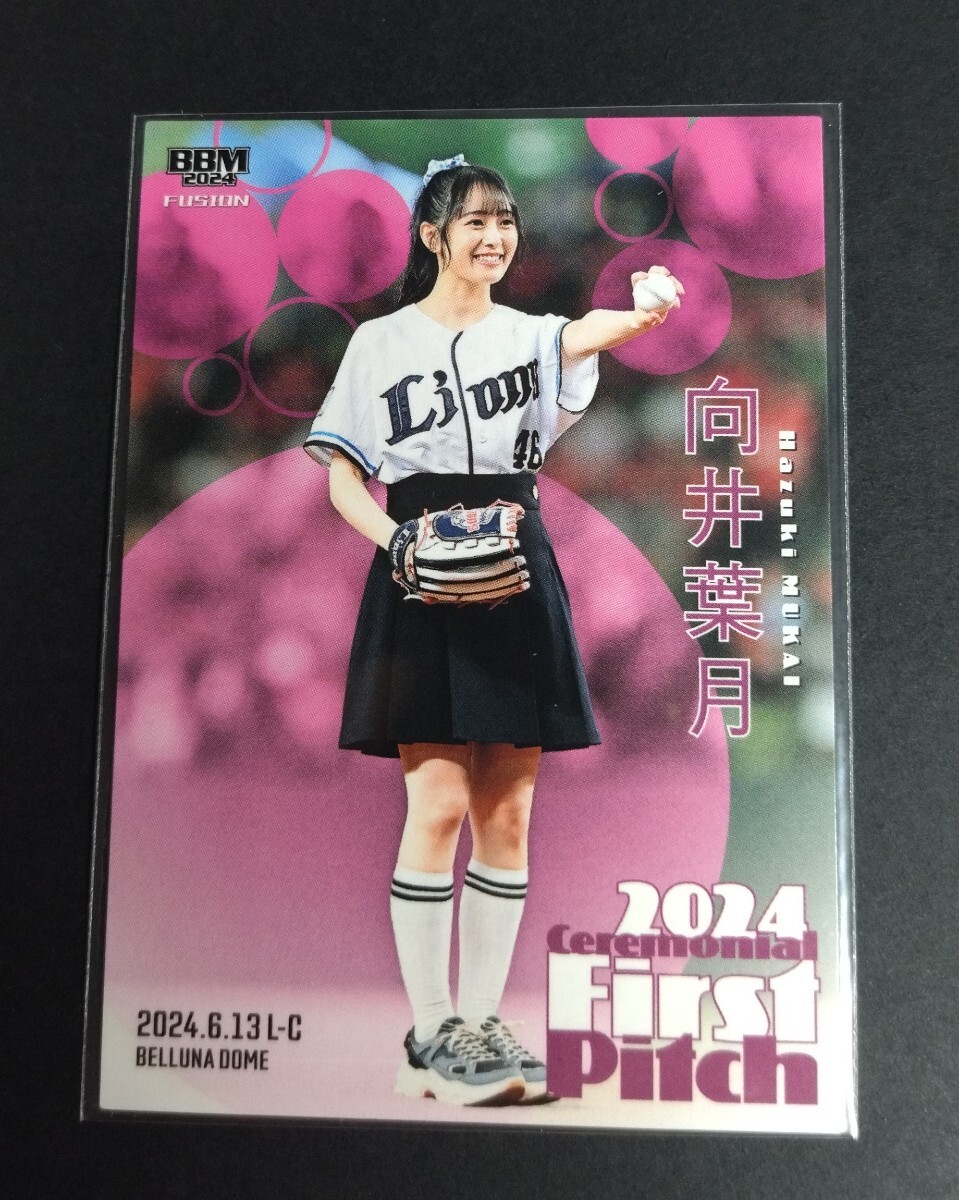 > 2024年BBM FUSION 向井葉月(乃木坂46)First Pitch!始球式カード。西武vs広島戦ベルーナドーム。No,FP38。