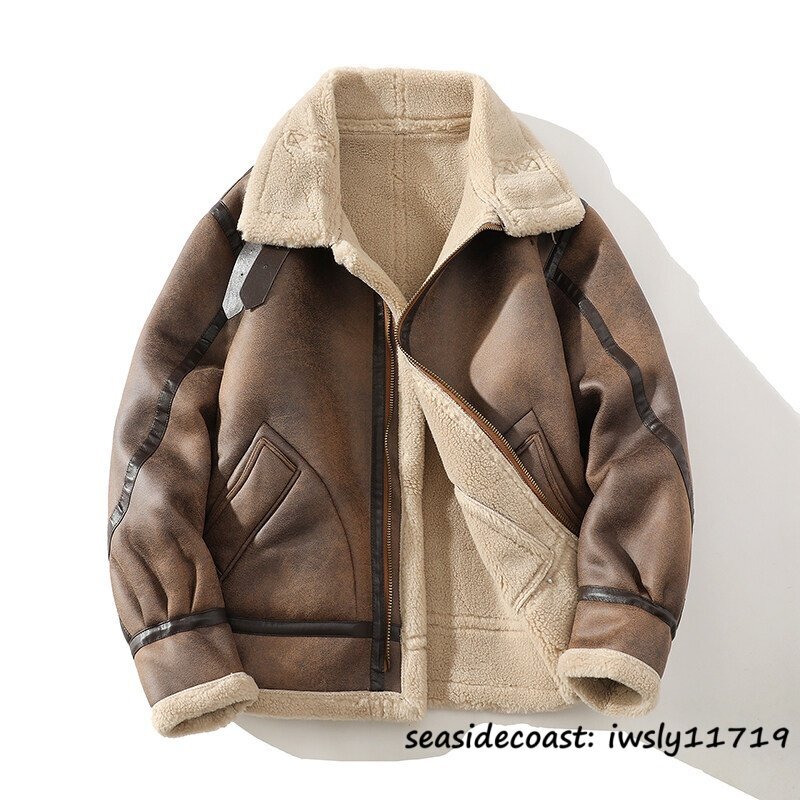 > 最上級◆超希少 ムートンコート レザージャケット メンズ 厚手 防寒 コート ライダース フライトジャケット 冬新品 ブルゾン ブラウン 2XL