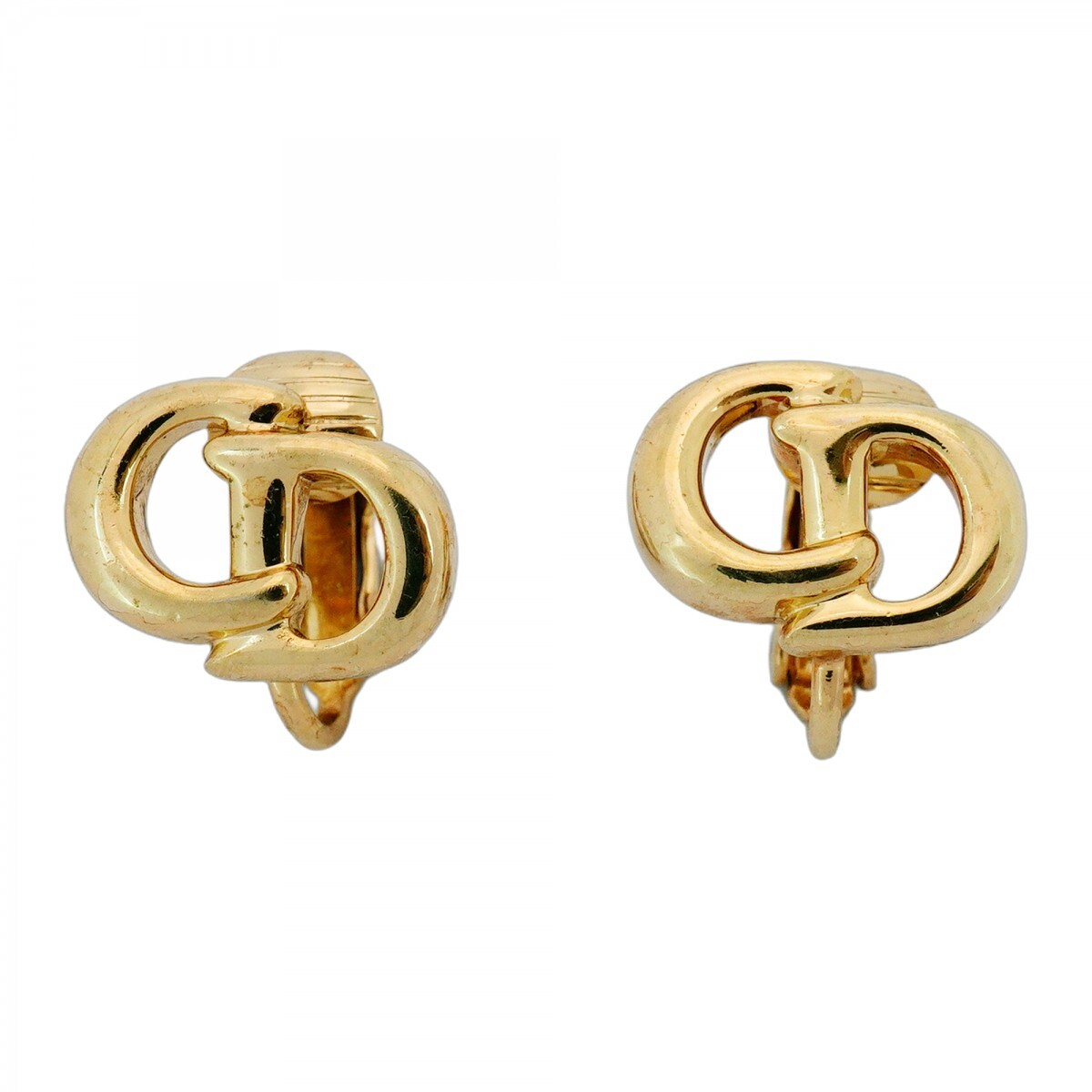 - 【5jmb0836】クリスチャンディオール イヤリング CDロゴ GPメッキ ゴールド【中古】レディース