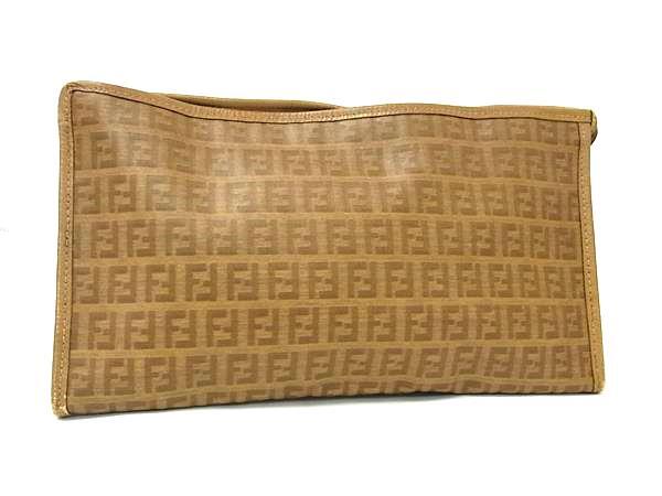 - 1円 FENDI フェンディ ズッカ柄 ズッキーノ コーティングキャンバス×レザー セカンドバッグ クラッチバッグ ブラウン系 BT0027