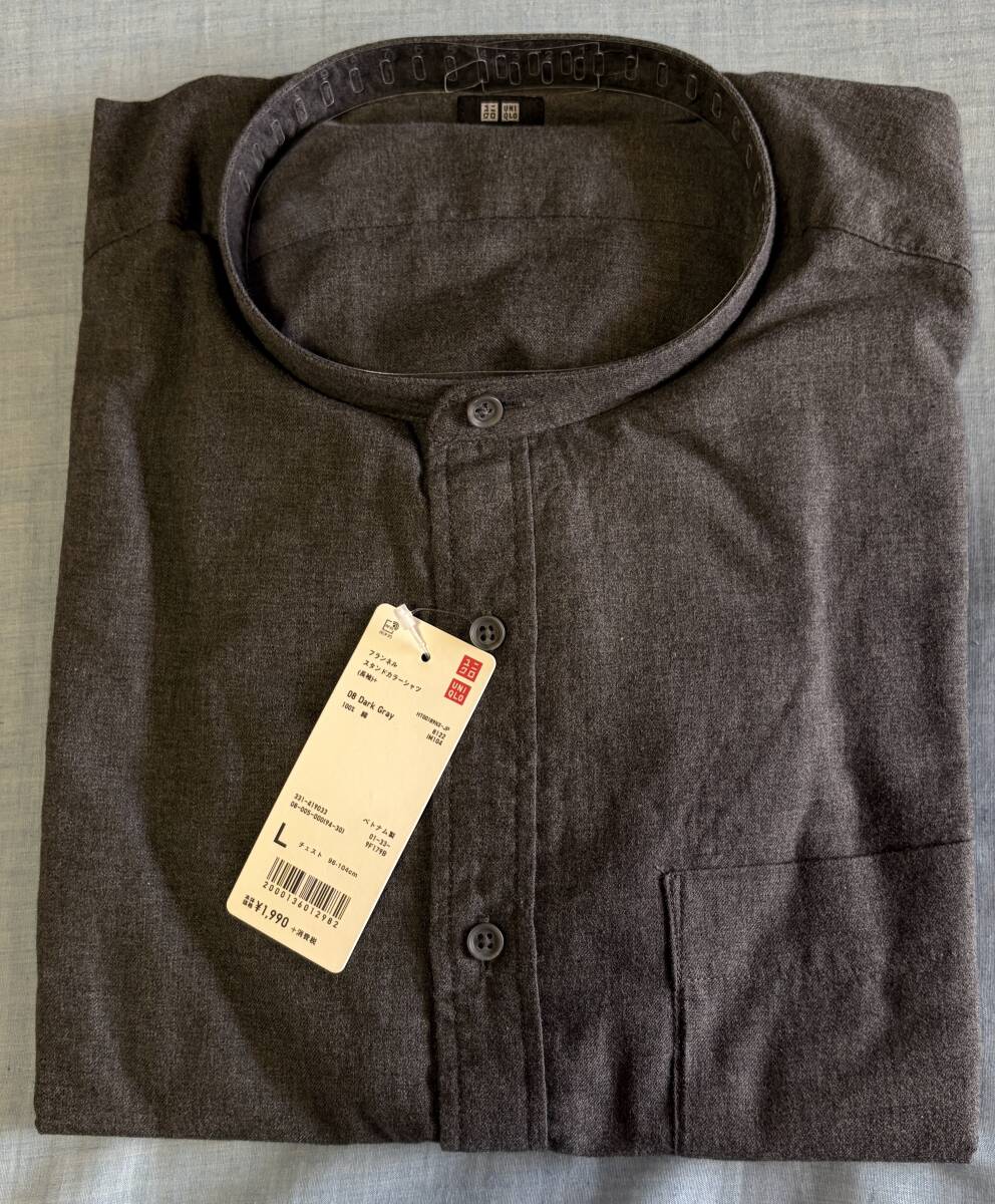 - ユニクロ フランネルスタンドカラーシャツ 長袖 カラーDark Gray サイズL 未着用品
