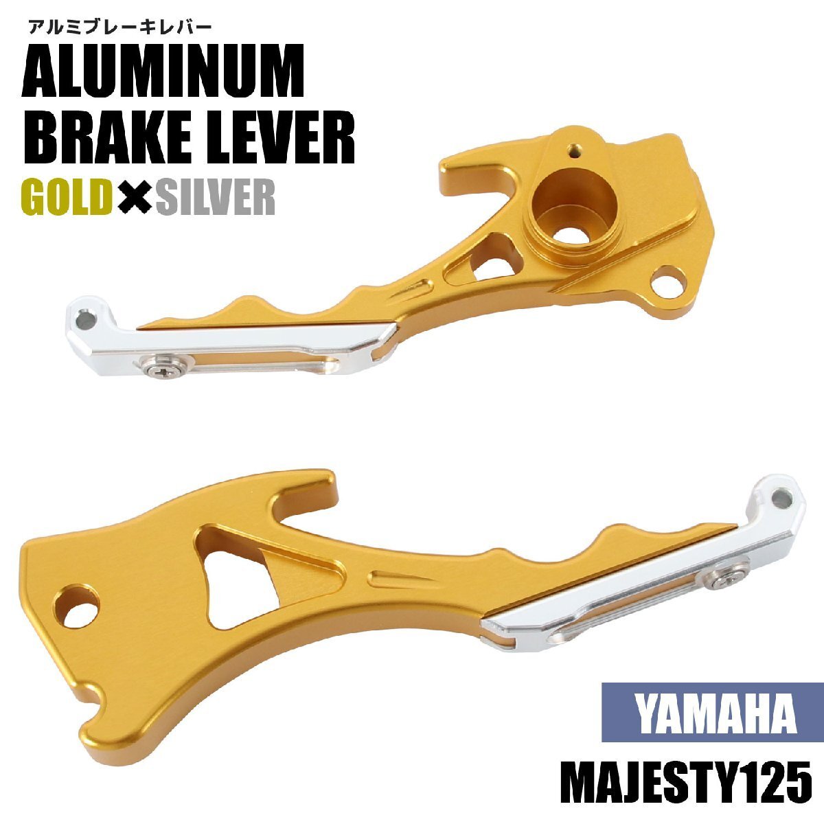 > ヤマハ マジェスティ125/FI 5CA アルミ ブレーキレバー ゴールド シルバー 左右セット 削り出し 長さ調節可能 社外品 交換 カスタム パーツ