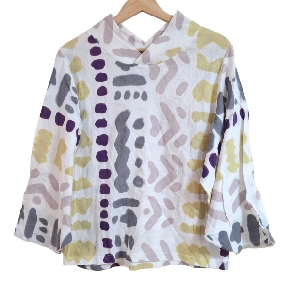 > ソウソウ SOU・SOU 長袖カットソー サイズL - アイボリー×ピンクベージュ×マルチ レディース Vネック/gibao/高橋織物 トップス