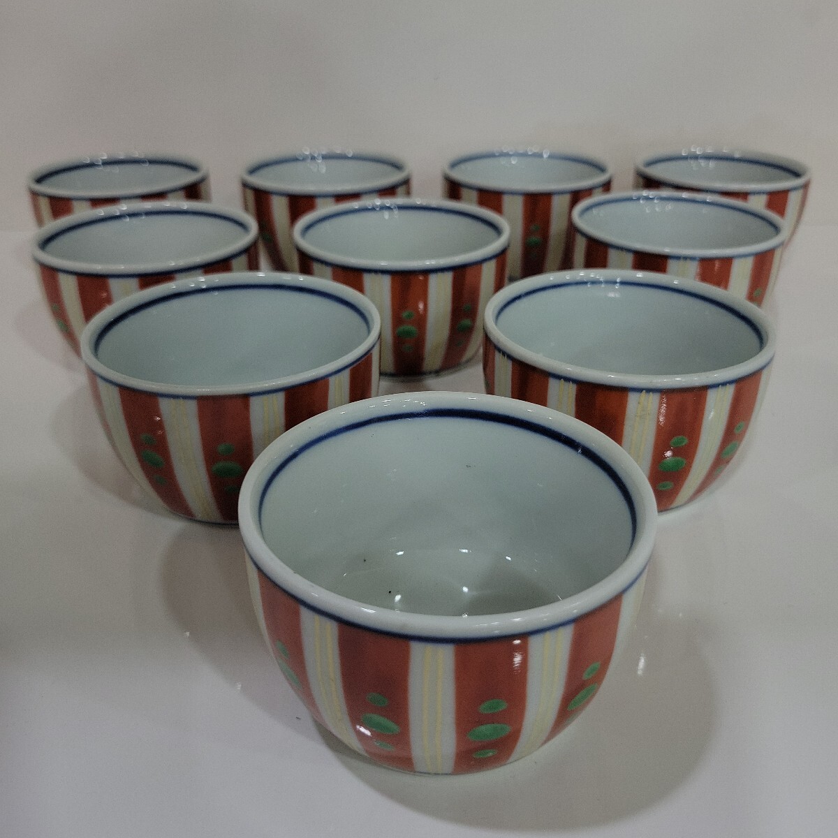 - №9447 中古食器 昭和レトロ 有田焼 幸泉 湯呑/口径約8㎝×6客