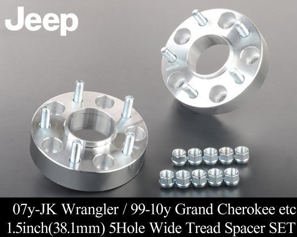 > ワイド トレッド スペーサー 38.1mm 2枚SET 5H PCD 127 1/2ボルト【適合 07-18y JKラングラー 99-10 グランドチェロキー V088