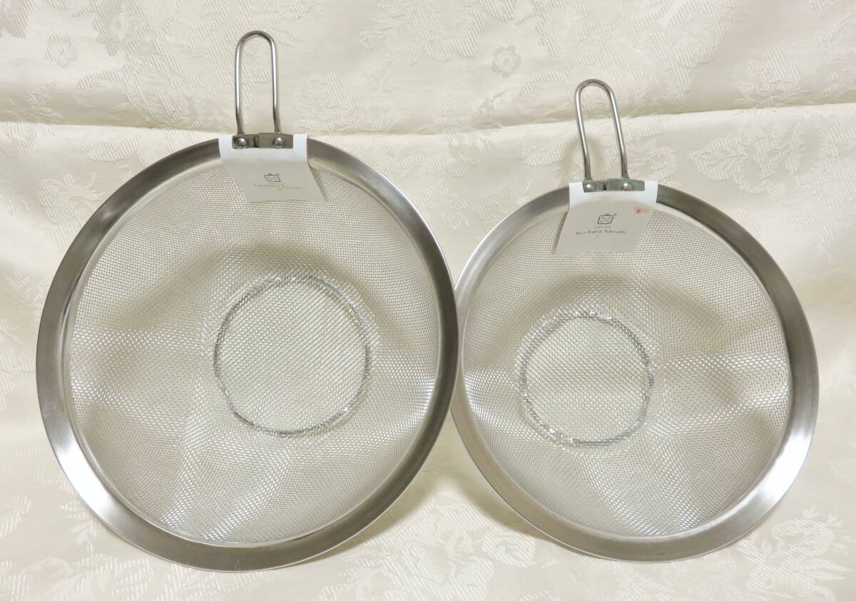 - 未使用 栗原はるみ 取手付き ステンレス ザル 18・21cm 2点セット 短め持ち手 底脚付 料理 調理 下ごしらえ 日本製 ヨシカワ ゆとりの空間