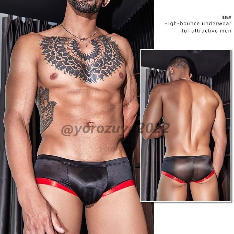 > 164-229-11 メンズ ツヤツヤ ローライズ 薄型ブリーフ【レッドブラックF】男性 ショーツ ランジェリー パンツ ゲイ ボクサーパンツ.2