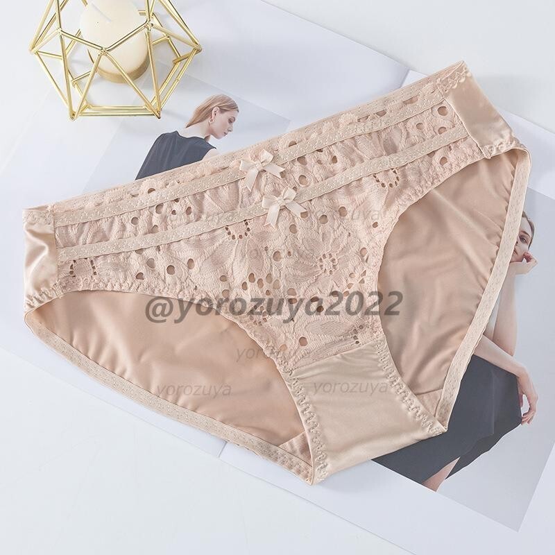 - 164-100-8 ツヤツヤ 光沢 かわいい リボン ショーツ【ベージュF】レディース 女性 下着 フルバック ランジェリー ブリーフ セクシー .1