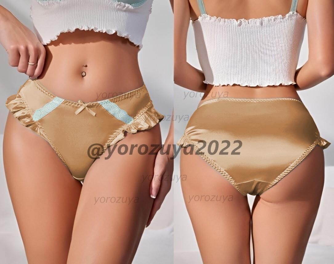 > 181-106-11 光沢 サテン ランジェリー パンティー【ゴールドXLサイズ】レディース 女性 下着 新品 パンツ ショーツ セクシー インナー .1