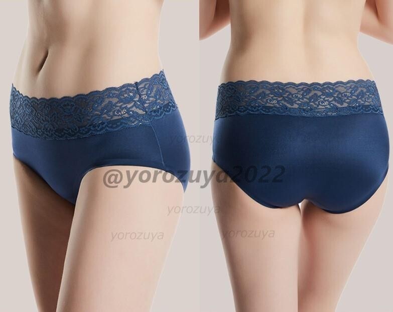 > 131-489-6 光沢 アイスシルク ローウエスト ミッドレース ショーツ【ブルーXL】レディース 女性 新品 セクシー パンティ ランジェリー.1