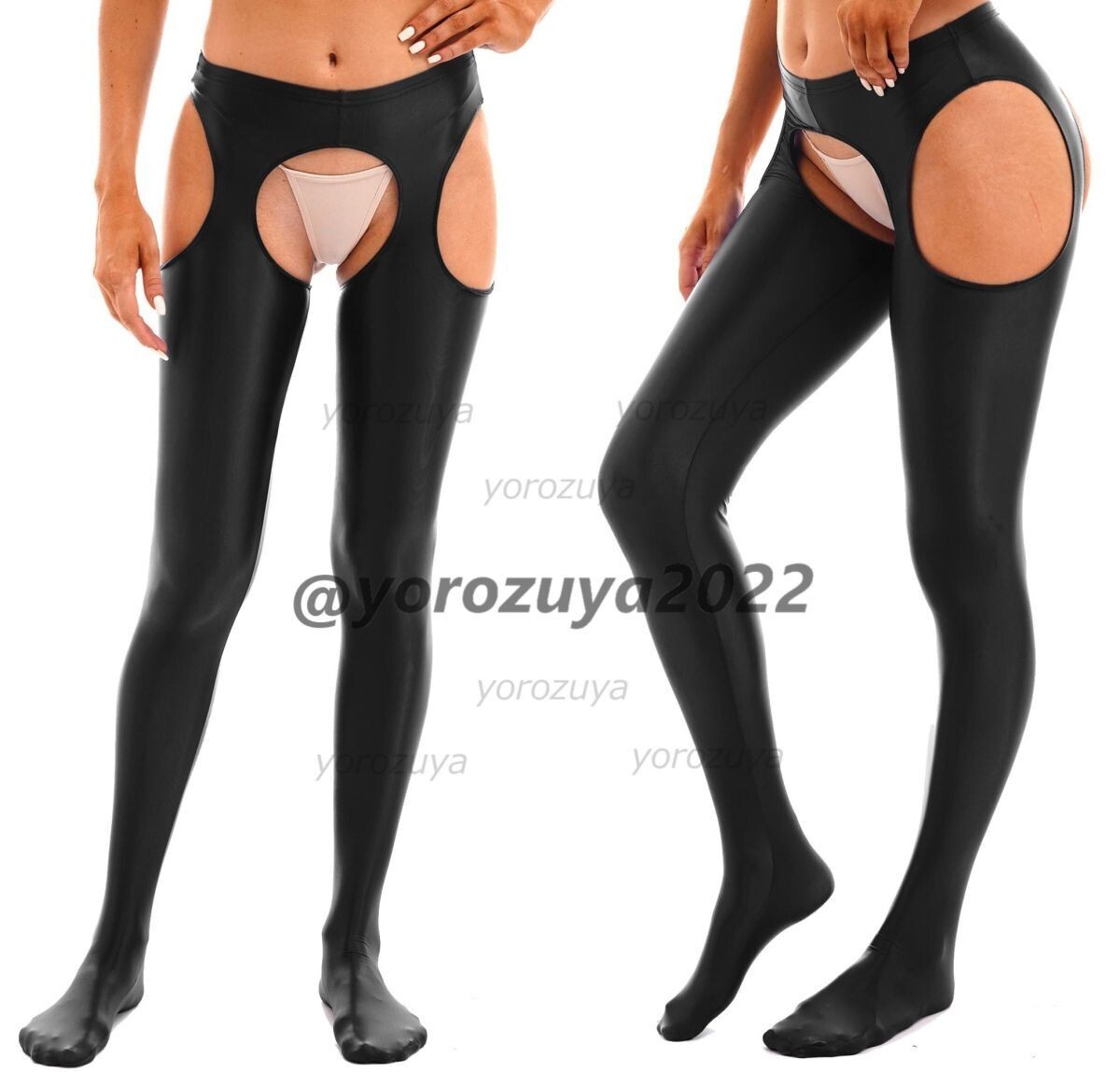 > 184-269-26 光沢 ツヤツヤ オープン サイドカット Toeタイプ【ブラックLサイズ】レディース 女性 レギンス コスプレ セクシー パンツ .2