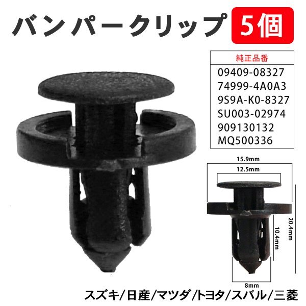 - ☆ 5個 バンパークリップ リベット 三菱 トヨタ スバル スズキ 日産 マツダ グリル アンダーカバー MQ500336 【CP6-5】