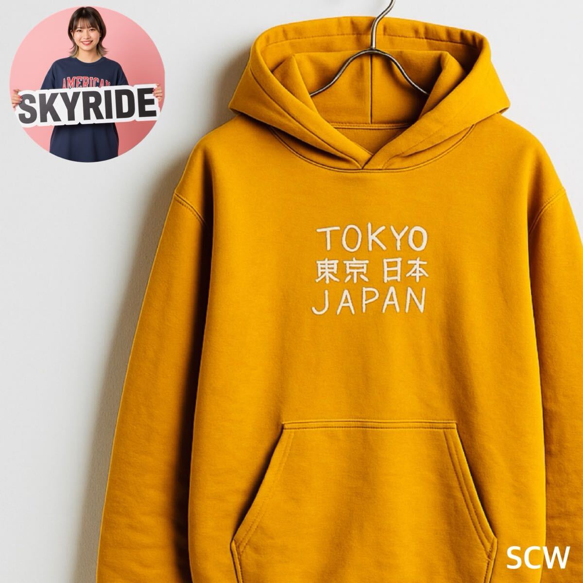 > Y2K SCW エスシーダブリュー パーカー フーディー TOKYOロゴ M イエロー 裏起毛 ビッグシルエット ストリート系 通年着用可 #SB0258