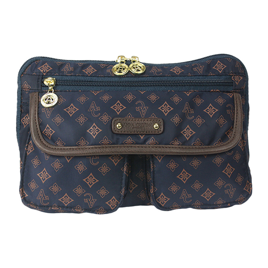 ANNA CRISTINA (アンナクリスティーナ)アンナロゴプリントウェストバッグ商品番号:4A47人気のモノグラムシリーズ。旅行やお散歩に最適な薄型ウエストポーチバッグ。軽くて薄く、体に密着させ上着で隠せるので、盗難防止対策もOK♪斜め掛けにしてボディバッグ、ウエストに装着してウエストポーチの2WAYでご利用頂けます☆コンパクトながらポケットがいっぱいなので、仕分け収納が可能。メインポケット内部の仕切りポケットもうれしいポイント!