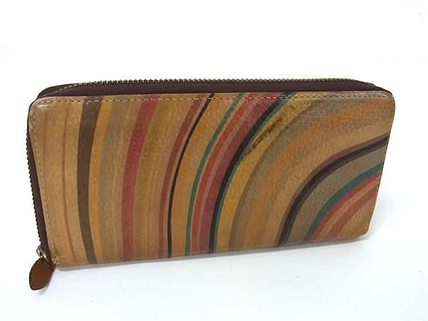 > Paul Smith ポールスミス レザー ラウンドファスナー 長財布 ウォレット レディース ブラウン系×マルチカラー DK2456