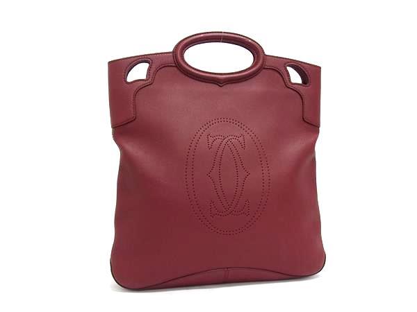 - 1円 ■美品■ Cartier カルティエ マルチェロ レザー トートバッグ ハンドバッグ レディース メンズ ボルドー系 FL6631