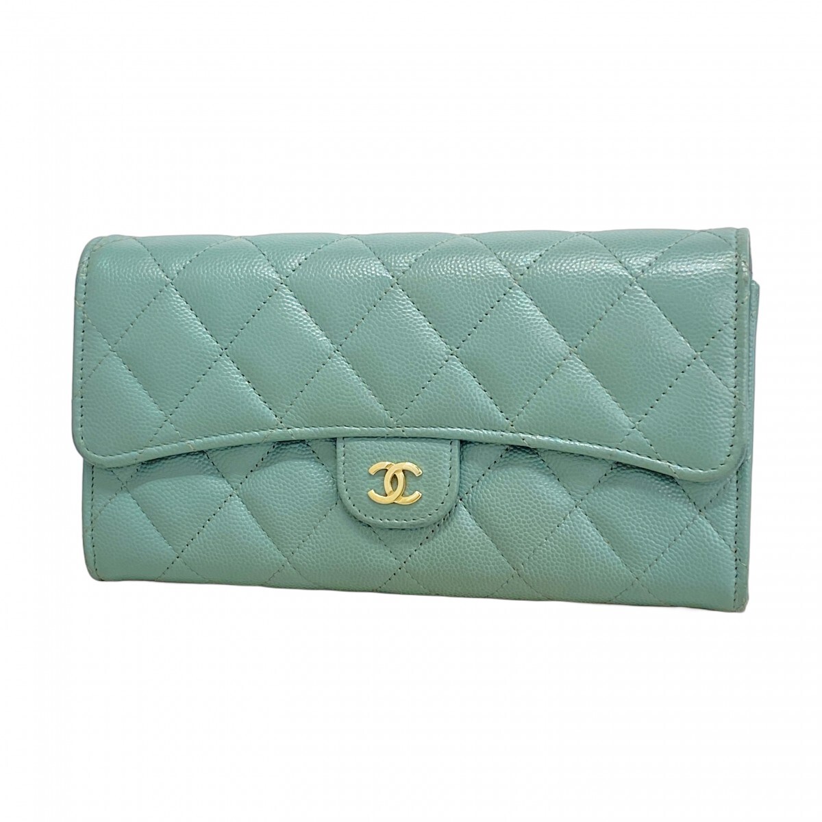 - ★最終価格【5md4296-h】シャネル 長財布 マトラッセ キャビアスキン ブルー シャンパンゴールド金具【中古】レディース