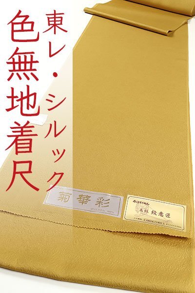 - 和遊館 KKK795 東レ シルック 丹後ちりめん 高級 紋意匠 菊華彩 色無地 着尺 洗える着物 菊地紋 マスタード色