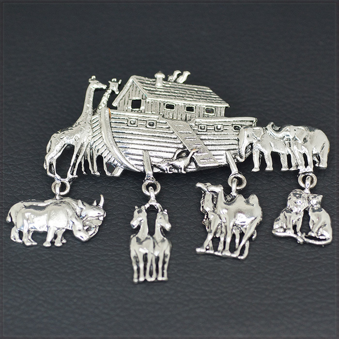 - [BROOCH] ヴィンテージ シルバー 旧約聖書 創世記 ノアの方舟 箱舟 キリン サイ 馬 ライオン など ツガイ カップル ブローチ 【送料無料】