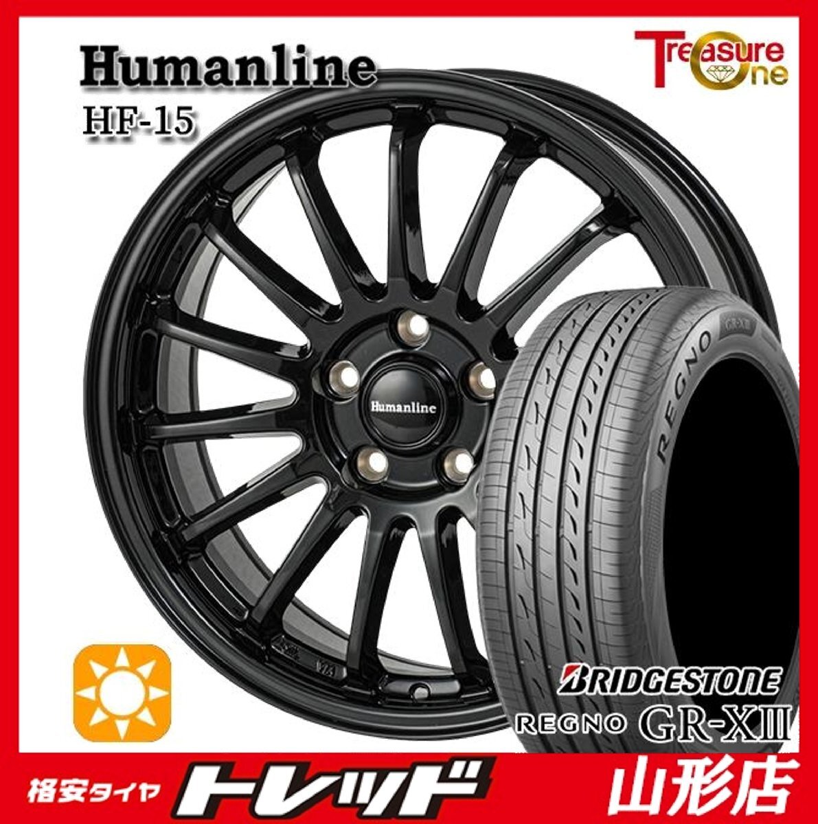> 山形店 新品 夏タイヤホイール4本セット Humanline HF-15 17インチ 7.0j 5H114.3 +38 BK ブリヂストン レグノ GRX3 215/55R17 2025年製