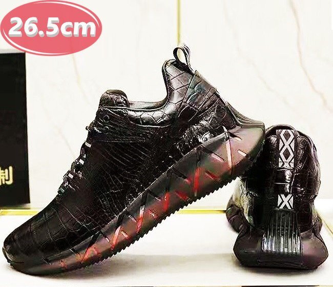 > クロコダイルレザー スニーカー 最高級 ワニ革 クロコダイル 靴 メンズシューズ 革靴 ブラック 26.5cm 【n793】