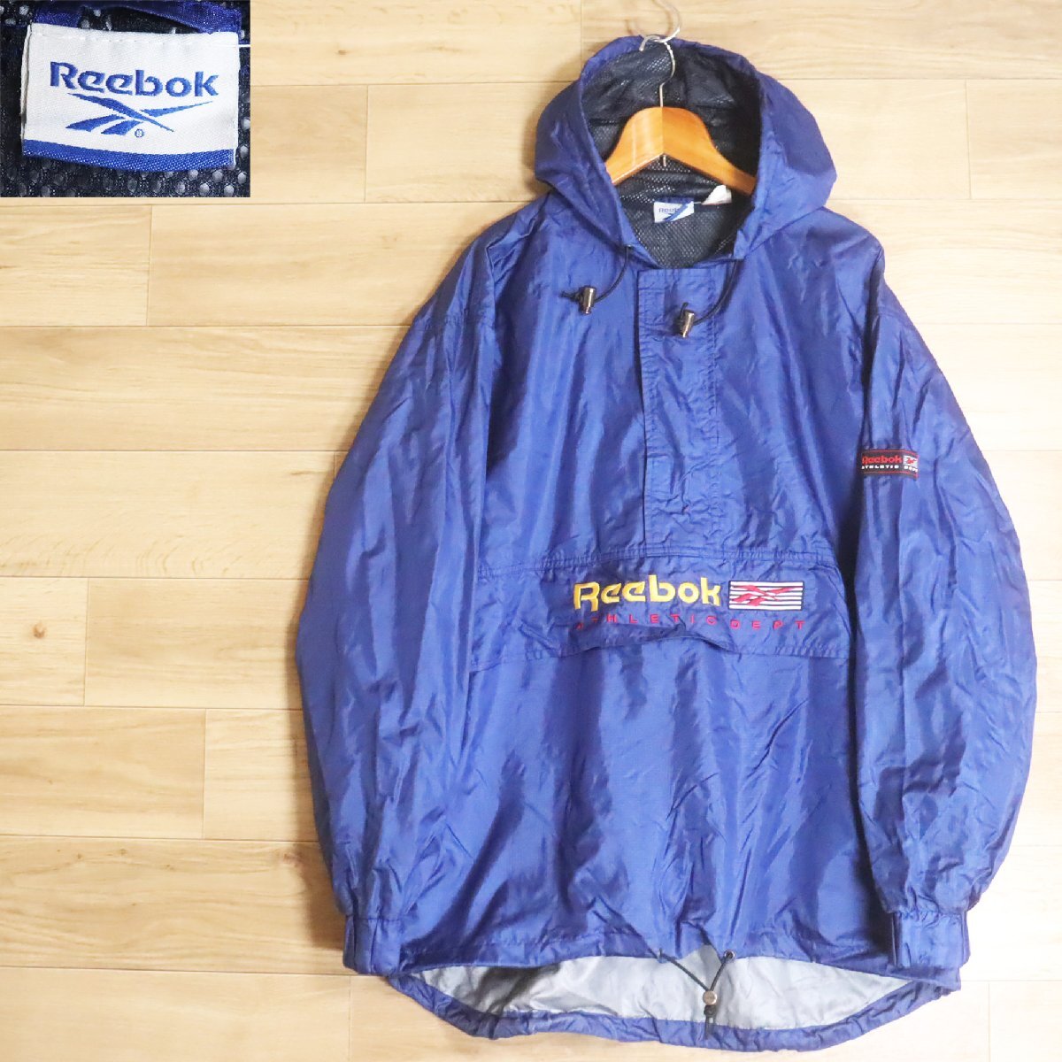 > ?11D/R6.11-10 Reebok リーボック アノラックパーカー ナイロンジャケット 裏メッシュ メンズ ロゴ刺繍 ジャンパー M